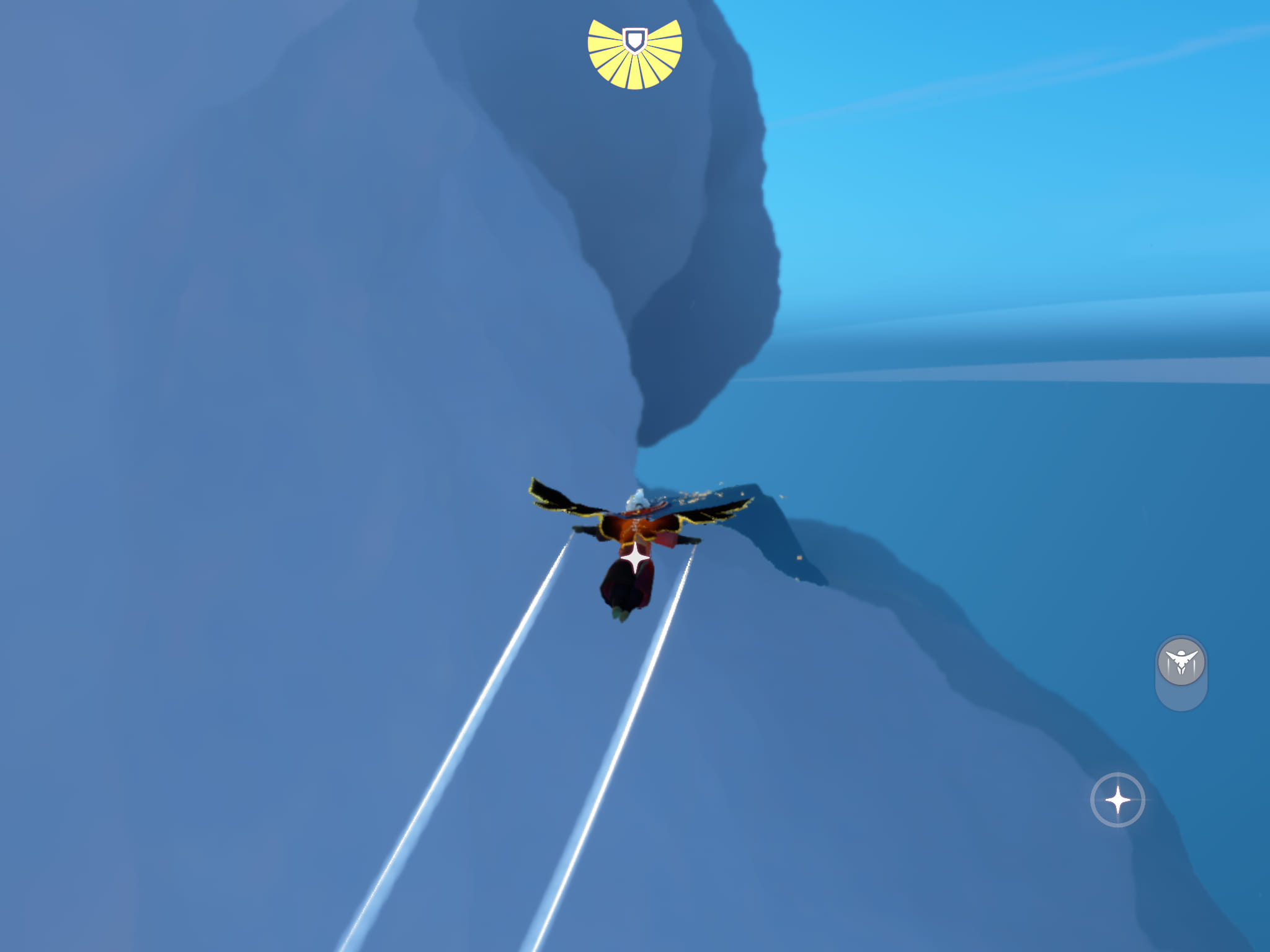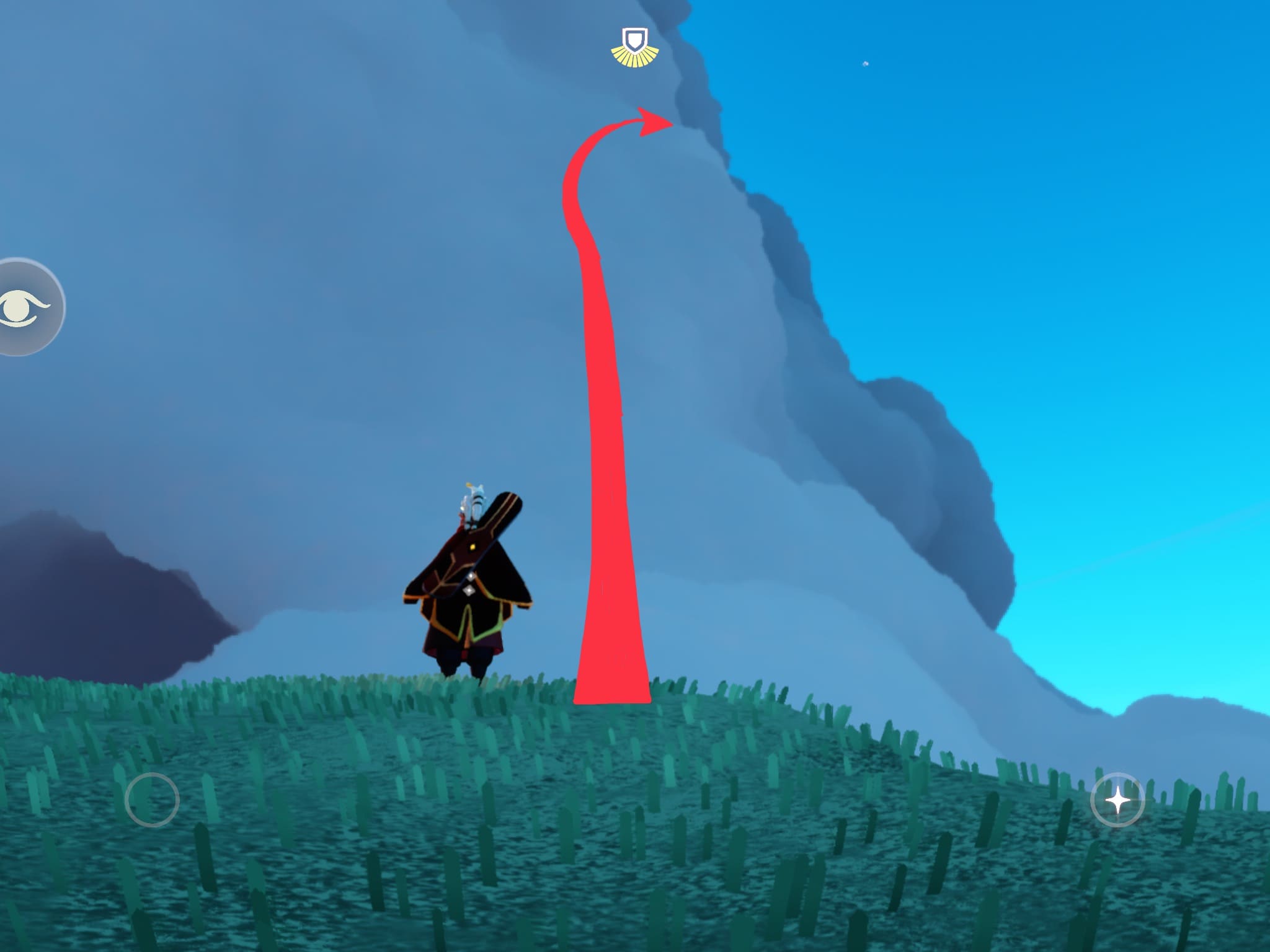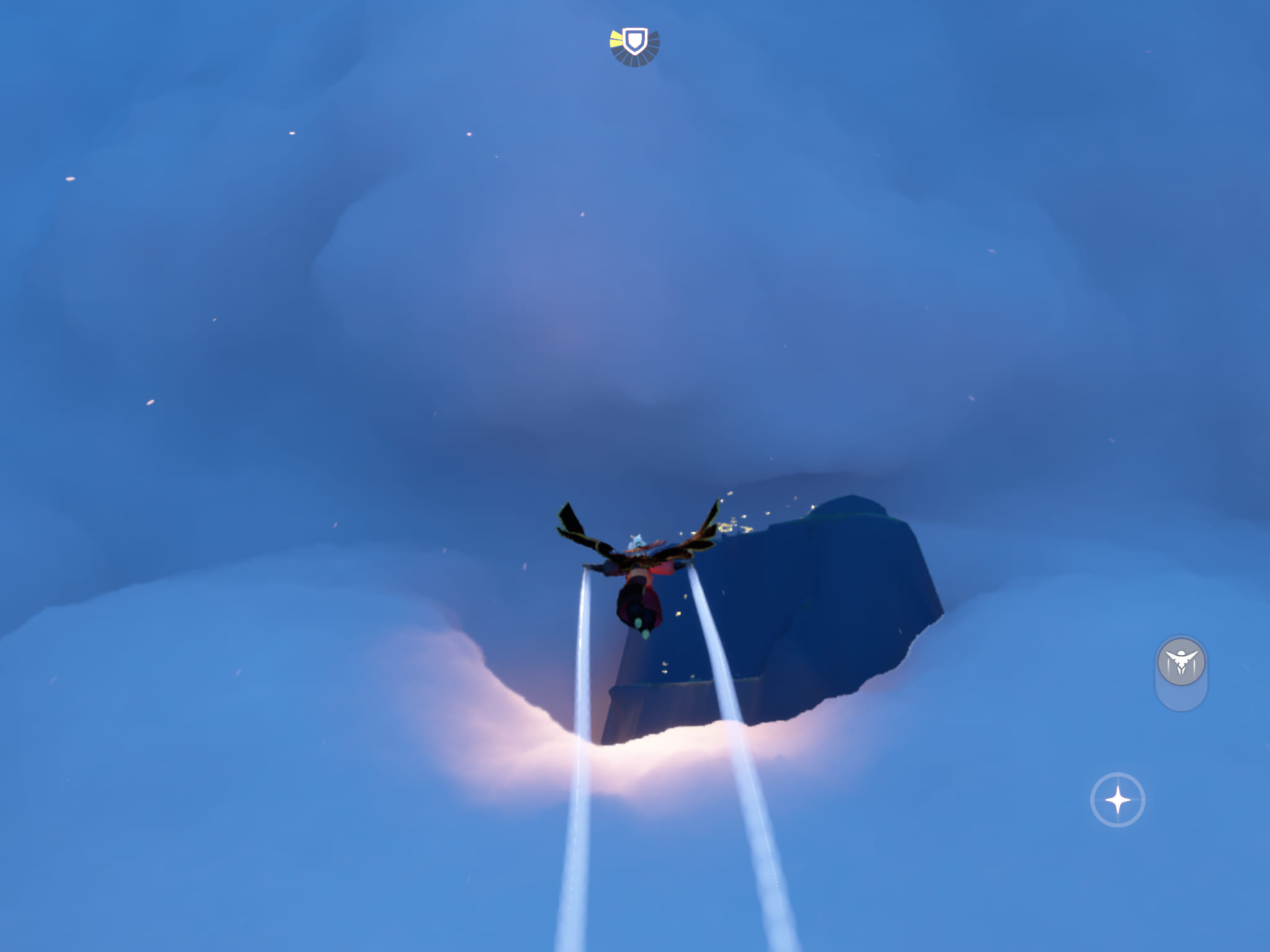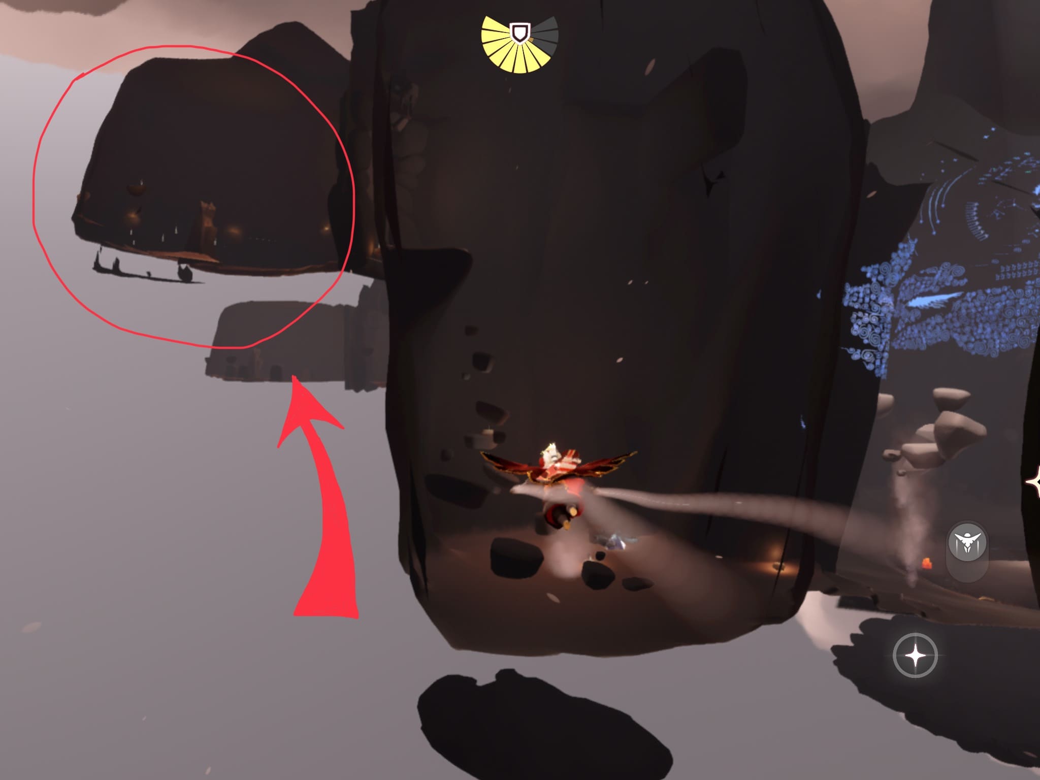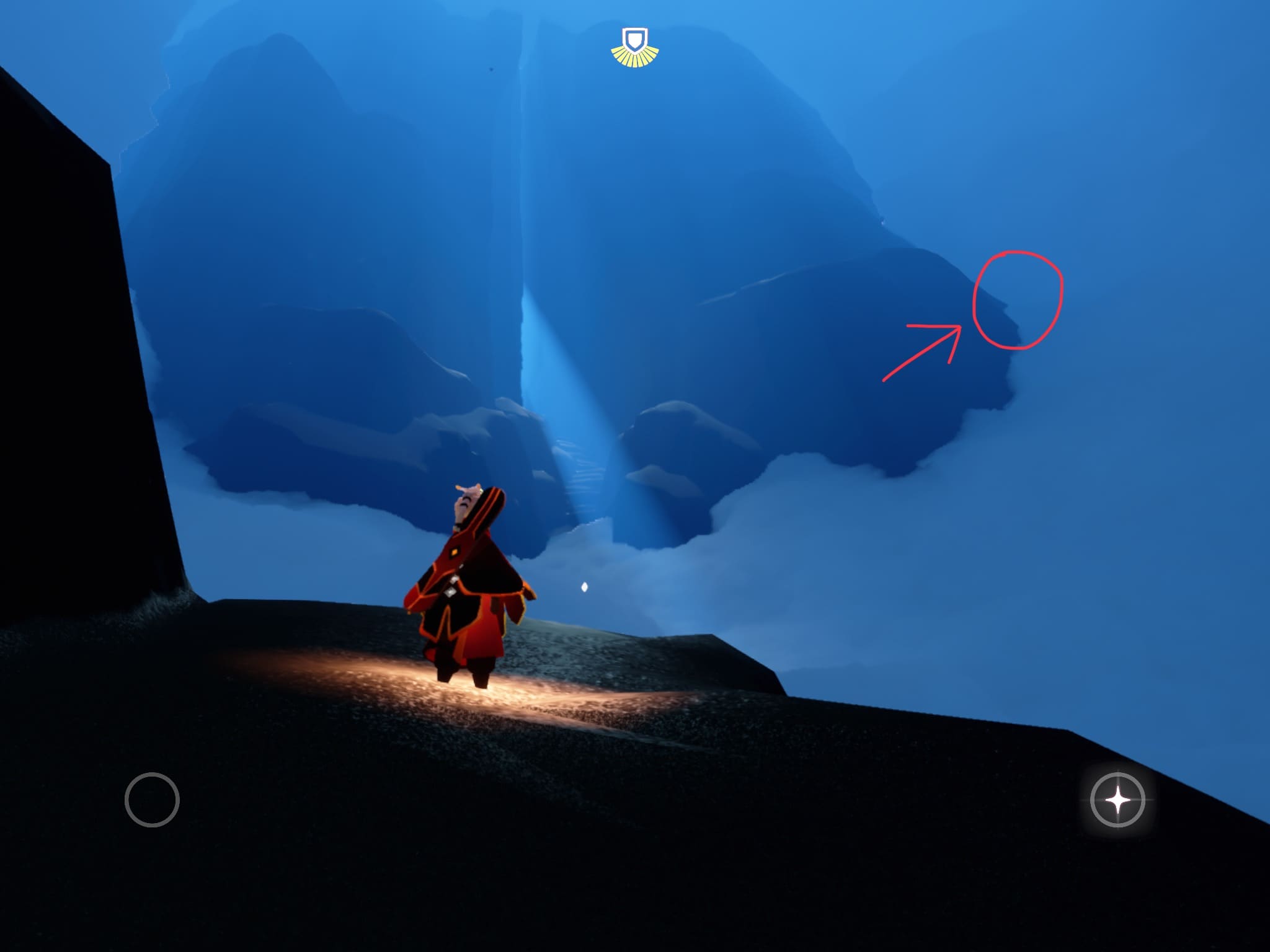 ➀:高台から丸で囲ったあたり(岩の側面と雲の間)に飛び込む。