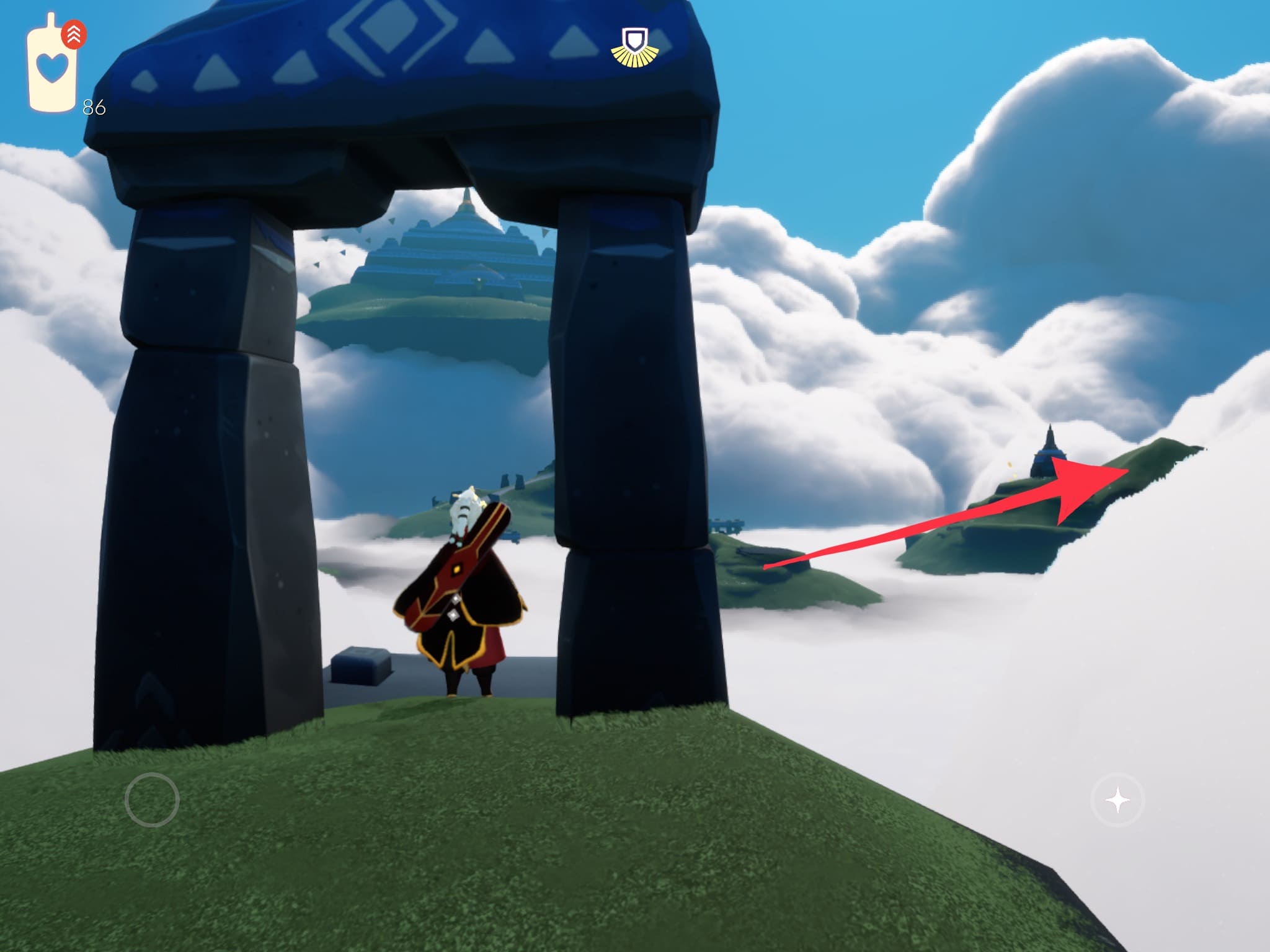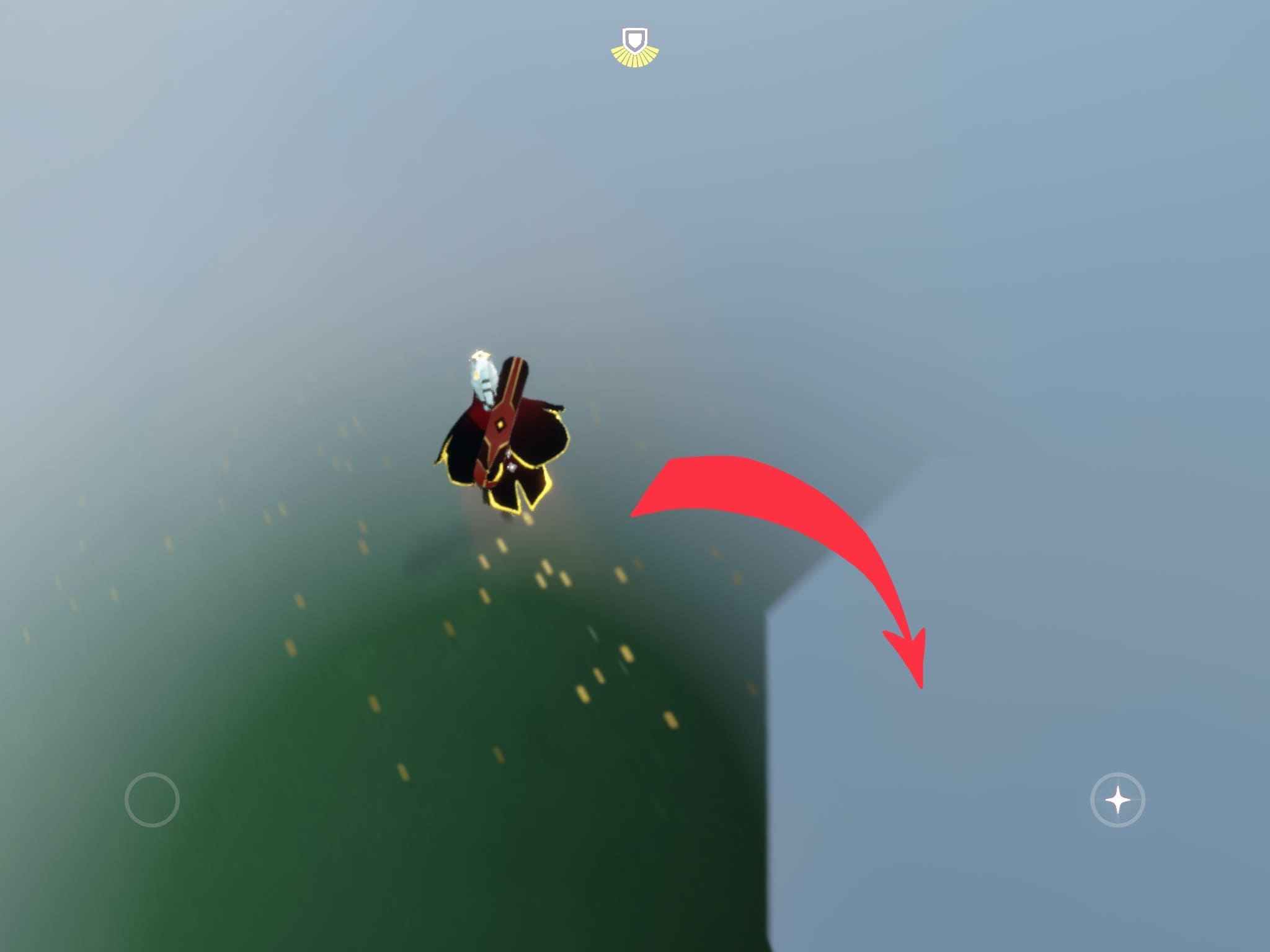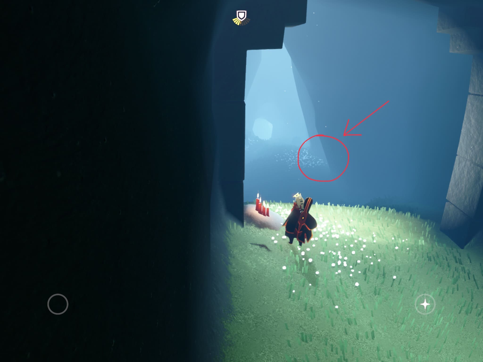 ➀:鳥の巣側のゲート近くにあるキャンドルを取ったら、丸で囲った場所に行く。