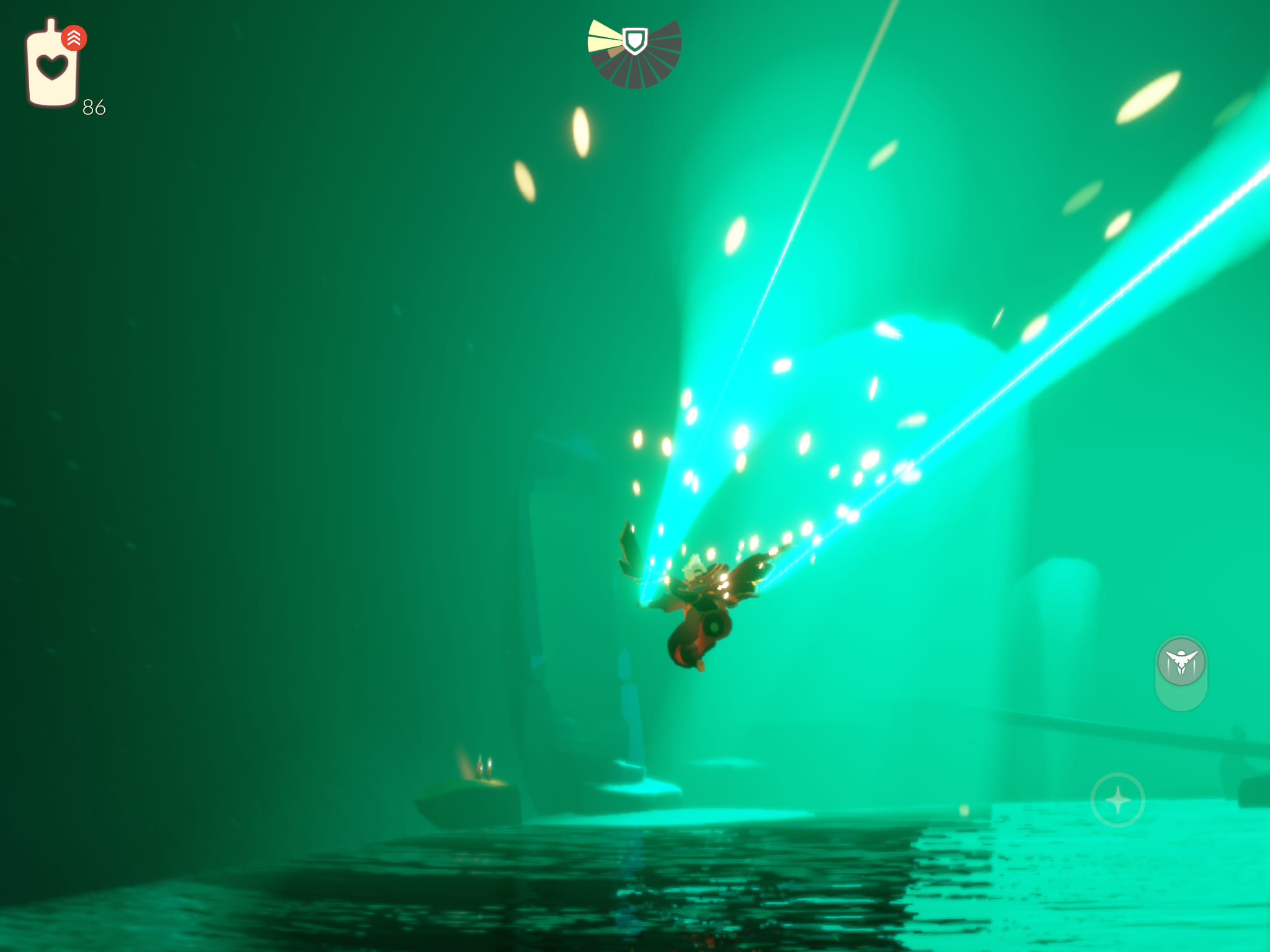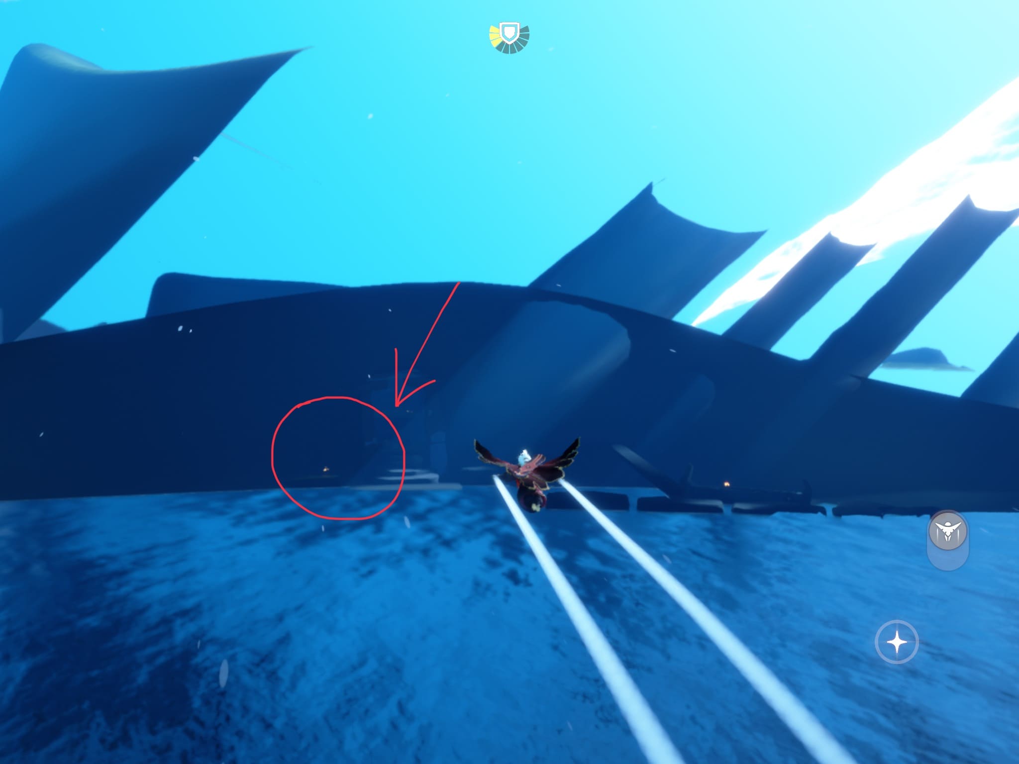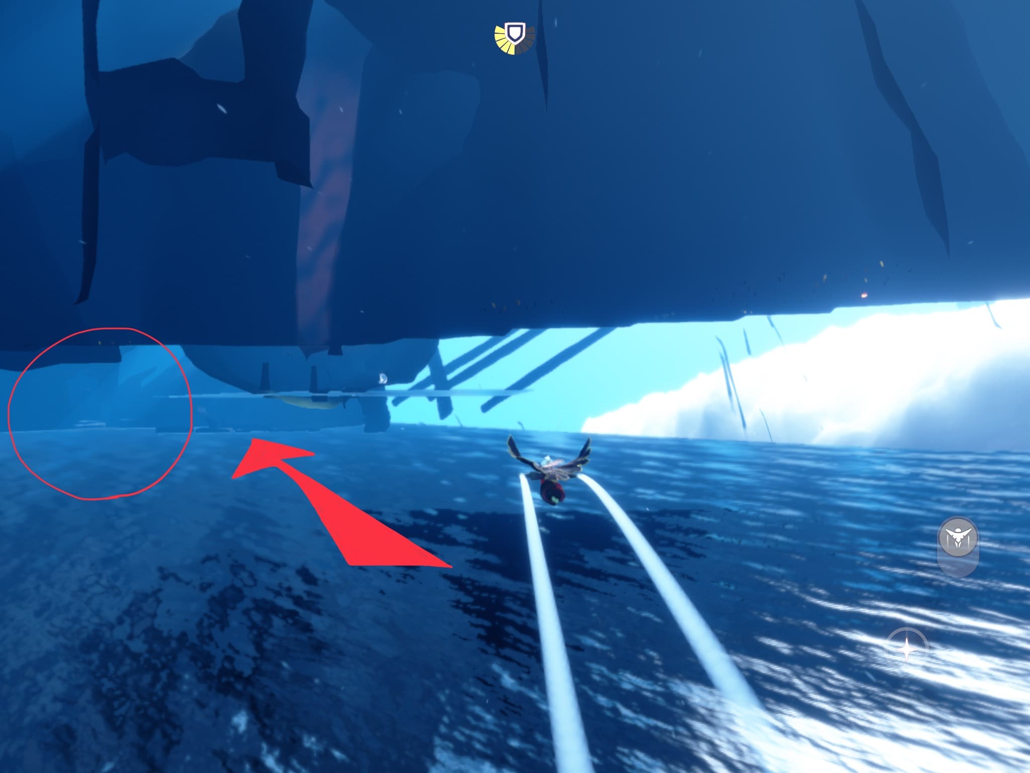 ※滑空モードのまま入水し、入水したらすぐに視点を水面に向ける。