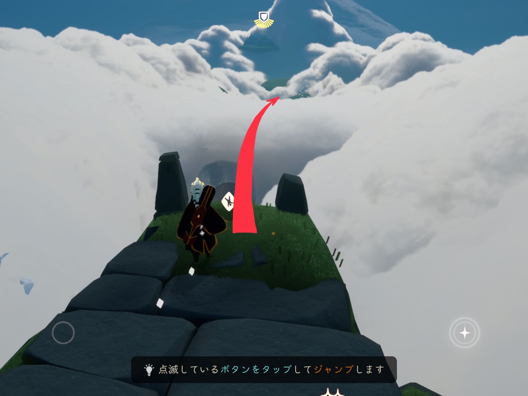 ➀:草原ホームから雲の上を目指して飛ぶ。