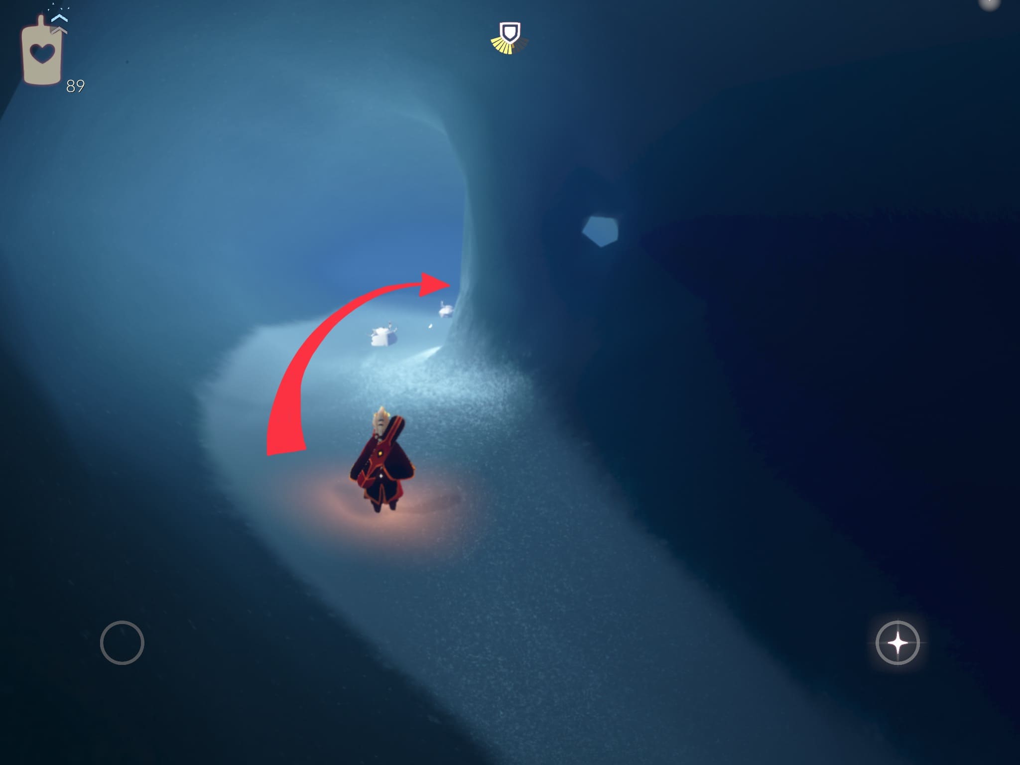 ➁:右奥の壁に向かってジャンプする。